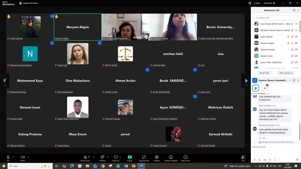 2026-2027 akademik yılı güz dönemi kapsamında Erasmus+ öğrenim ve staj hareketliliğinden yararlanmaya hak kazanan (asil ve yedek listede yer alan) öğrencilere yönelik oryantasyon toplantısı, 02 Nisan 2026 tarihinde gerçekleştirilmiştir.